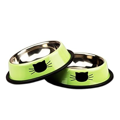 Petfamily Stainless Steel Cat Bowl, Heavy Duty Dog or Cat Dish for Small Dogs & Cats Painted with Non-Skid Rubber Bottom, Pet Food & Water Bowl 8 Ounce (Set of 2)