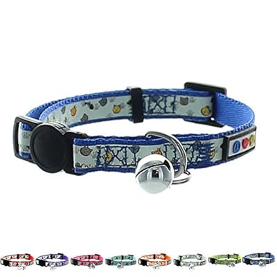Pawtitas Pet Glow In The Dark Cat Collar with Safety Buckle and Bell