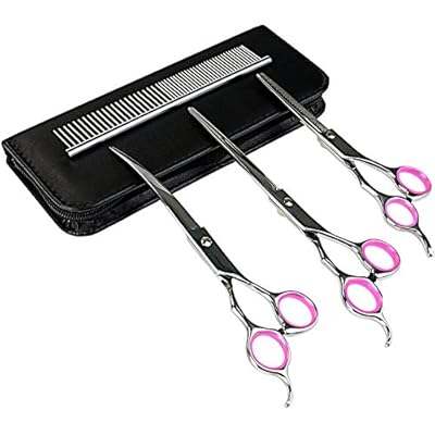 GTT 4 Pieces Professional Pet Grooming Scissors Set, Perfect for Dog or Cat, Durable Stainless Steel Provided with 7-inch Cutting Scissors, Thinning Shear, Curved Scissors, Comb