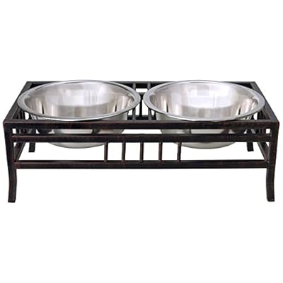 Bergan 88142-P Elevated Double Bowl Feeder, Stainless Steel, .75-Quart