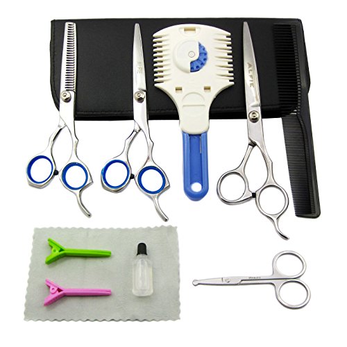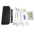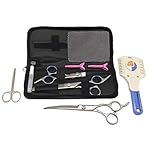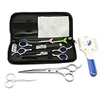 This 10-piece Grooming Kit includes 7-inch Downward Curved Shear, 6-inch Stainless Steel Cutting Shear, 6-inch 26-tooth Thinning Shear, 3.5-inch Round-Tip Trimming Scissors, Razor Grooming Trimmer, 7.5-inch Pet Grooming Comb, two Hair Clips, Scissorss Lubricant, Leather Cleaning Cloth and Leather Travel Case. Components of this grooming kit retail for $74.97 if purchase separately.