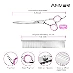 Pet Grooming Scissors Structures: Sharp cutting edge to let you trim the whole fur in minutes, the soft finger ring inserts let your finger more comfortable, the adjustable screw can keep watch over the scissors tight or loose and the extra finger ring inserts let you maximum comfort all the way through long grooming sessions.