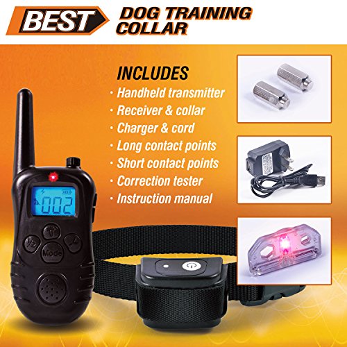BEST rechargeable dog training collar. Version 2.0. 100% protected to your dogs. Water-resistant Collar. Lightweight LCD controller. Adjustable sensitivity. Durable nylon collar. Long range.
