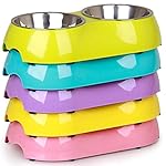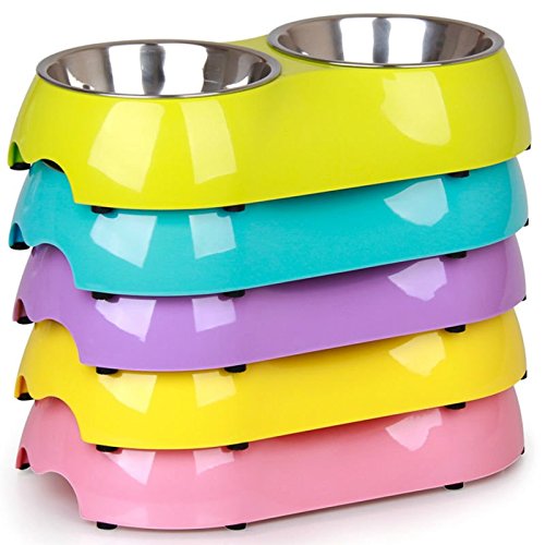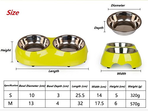 Two bowls design is convenient for feeding, one can be utilized for water, the other one can be utilized for food.The bottom is with rubber base, steer clear of spills and slip when pets feeding.