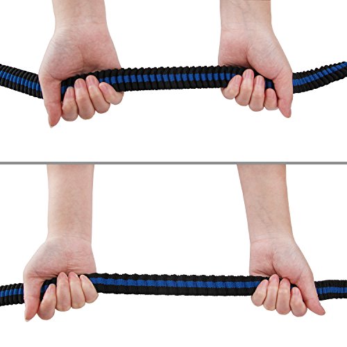 The durable bungee is placed between the two handles keeping the bungee from having a constant pulling tension on your dog when it isn’t needed – It allows for an absorbed extension for strong pulling dogs.