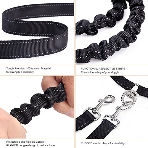 INTEGRATED DOUBLE BUNGEE TETHERS: Absorbs unwanted forces so your arm and neck should not have to, shock absorption, suitable for small and large dogs.