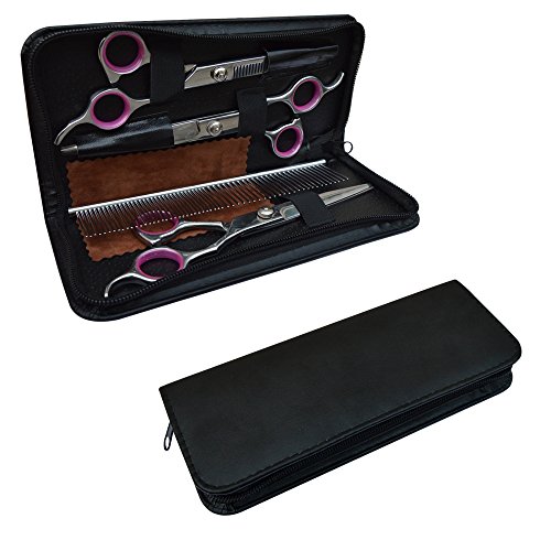 Perfect Pet grooming kits come with cutting & thinning& Curved Shears with Combs and Cloth all in a nice zippered storage case,cutting & thinning shears for thinning out pet’s fur,removing tangles,and blending,Curved Shears great for feathering edge,Steel Comb has widely spaced teeth with 2 different size teeth to removes tangles, mats, loose hair and dirt,Cloth to wipe off all tools;