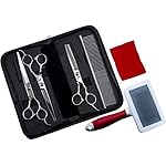 • 6-1/2-inch Thinning Scissors (3.5″ blades) : Used to thin out hair on a thick coat and to blend different lengths of fur on the coat.