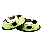2 bowls for the cost of one, both are painted neon green in color with a cute kitty face on it.