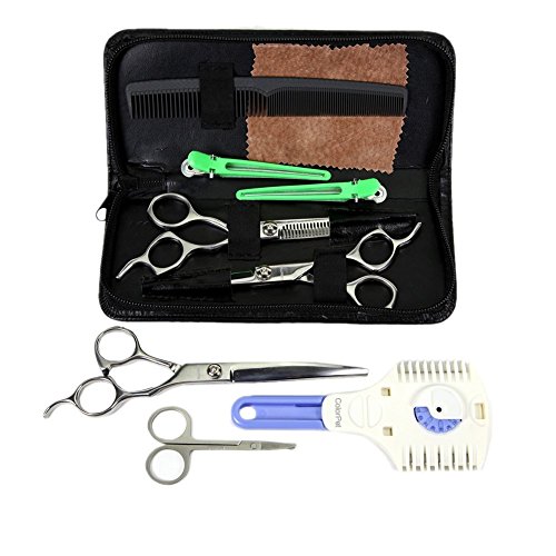 High Quality Product Durable and long-lasting safety steel razor. Quick, easy and best possible for all pets’ sizes. We made this kit with Professional Scissors Series: Handles with fingers rests are contoured for maximum comfort. Comfortable and ergonomic thumb and finger-rings. Adjustable tension keep watch over knob produces smooth scissors furthermore their Razor sharp edge provides effortless shaping and finishing of all coat types. Drastically reduces the amount of effort needed. A full kit This 9-pieces grooming kit includes 6-inch stainless steel cutting shear, 6-inch 26-tooth thinning shear, 3.6-inch round-tip trimming scissors, razor grooming trimmer, 7-inch curved shear,7.5-inch pet grooming comb, two green hair Clips, brown leather cleaning cloth and leather go back and forth case. With Colorpet tool you are going to do the easiest cut! Specifications 1* brown leather cleaning cloth 1* 6-inch stainless steel cutting shear 1* 6-inch 26-tooth thinning shear 1* 3.6-inch round-tip trimming scissors 1* razor grooming trimmer 1* 7-inch curved shear 1* 7.5-inch pet grooming comb 2* green hair clips Package comprises 1x Pet Grooming Set