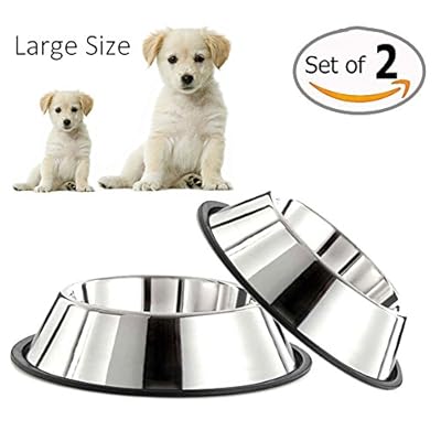 Whippy No-Tip No-Slip Stainless Steel Bowl For Samll/Medium/Large Pets (set of 2)